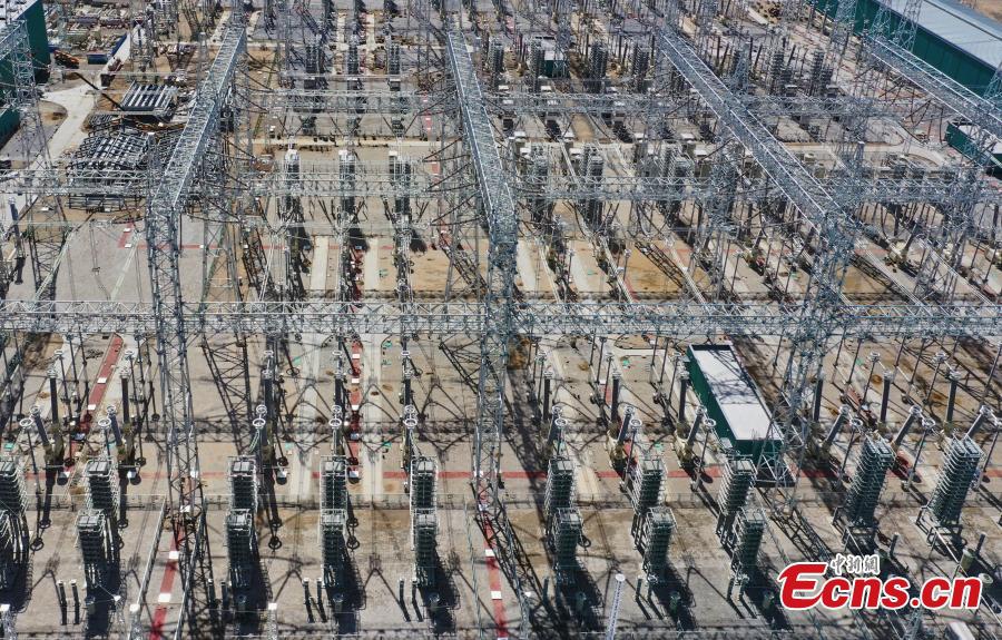 התמונה שצולמה ב- 24 ביוני 2020 מציגה את קו הכוח UHV (מתח גבוה במיוחד 800 קילוולט) הנמצא בבנייה. מסלול הכביש המהיר הראשון של הספק' להעברת אנרגיה נקייה משתרע על פני 1,600 ק"מ על פני חמש מחוזות, מצפון מערב סין' מחוז צ'ינגהאי למרכז מחוז' סין. הפרויקט אמור להתחיל לפעול בשנת 2020. (שירות חדשות צילום / סין)